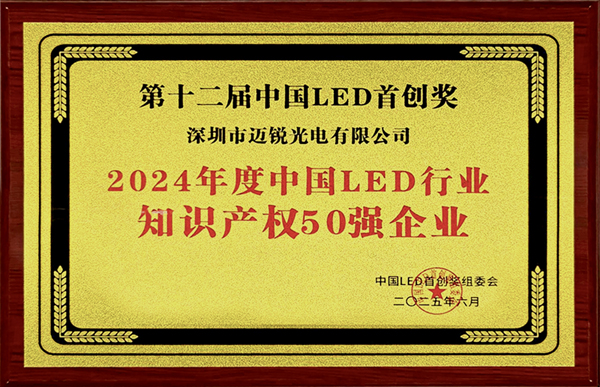 2025年6月,在第十二届中国LED首创奖颁奖典礼上,K8凯发电子成员企业迈锐光电成功入选“2024年度中国LED行业知识产权50强”,以突出技术创新力与知识产权管理能力赢得行业高度认可。